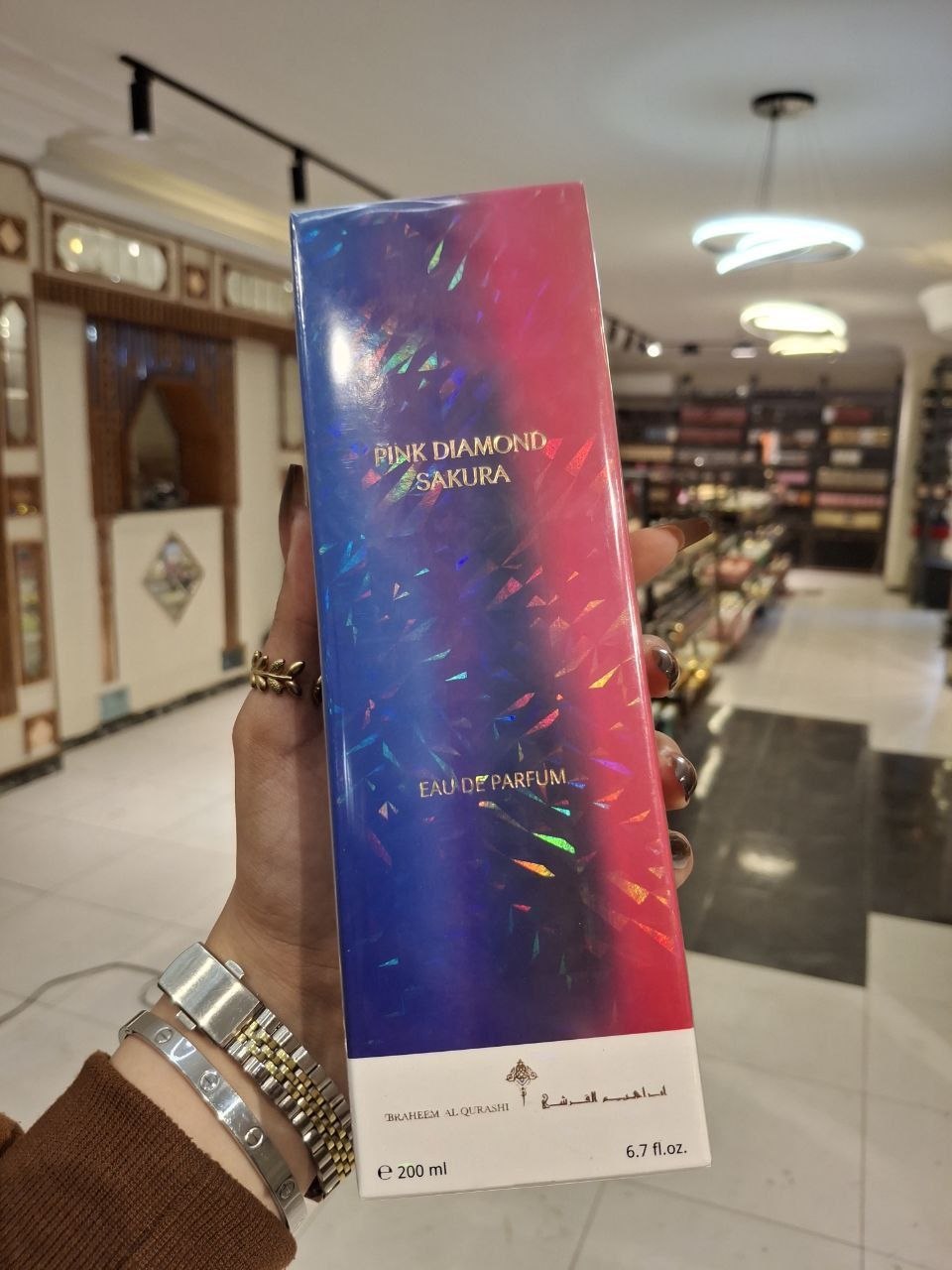 Pink Diamond Sakura Ibraheem AlQurashi عطر زهري للنساء . Pink Diamond Sakura صدر عام 2023. إفتتاحية العطر زهر البرتقال, الفاوانيا و الماندرين (اليوسفي); قلب العطر الزنبق, الورد و زهر الكرز; قاعدة العطر تتكون من المسك الأبيض, العنبر و خشب الصندل.